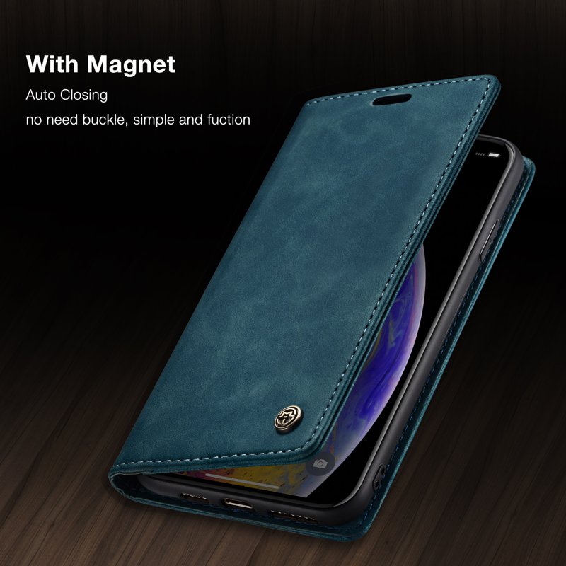 CASEME 013 Series för iPhone XS/X 5.8 tum Retro Flip Läderfodral - Blå