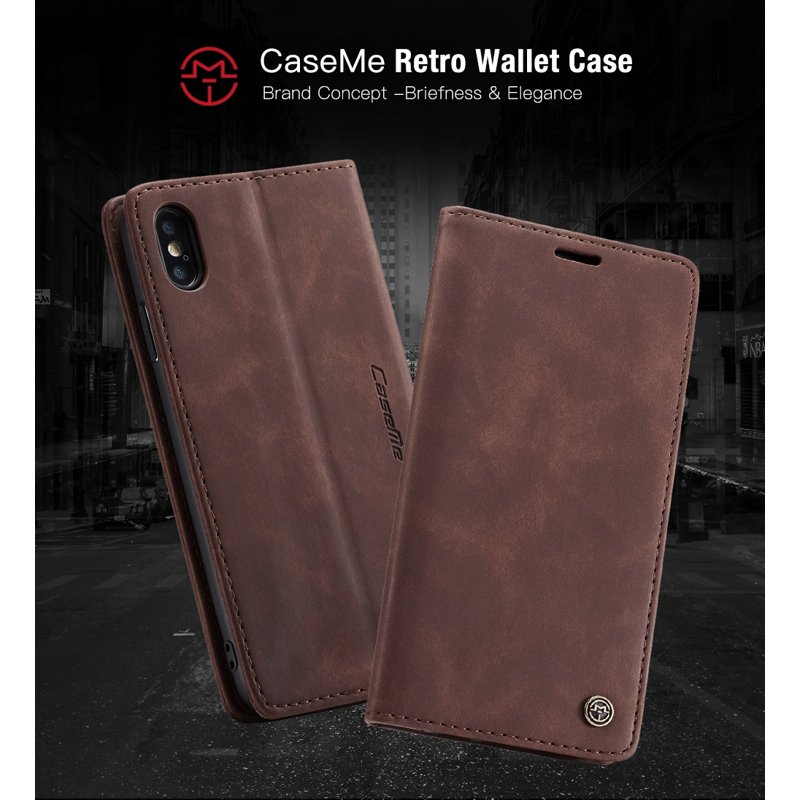 CASEME 013 Series för iPhone XS/X 5.8 tum Retro Flip Läderfodral - Kaffe