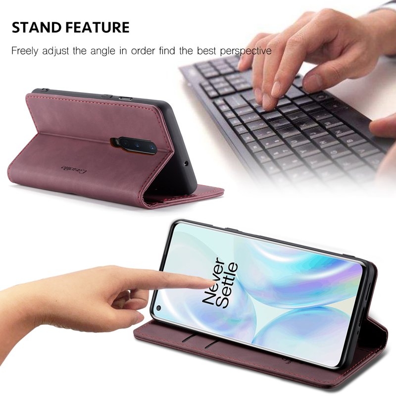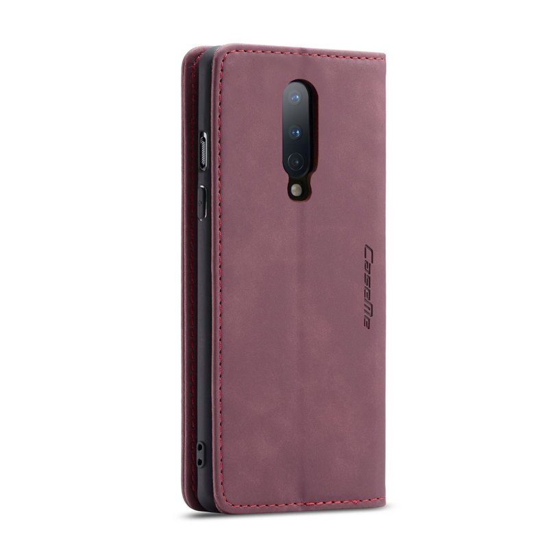 CASEME 013 Series Auto-absorbed Läderplånbok för OnePlus 8 - Vinröd