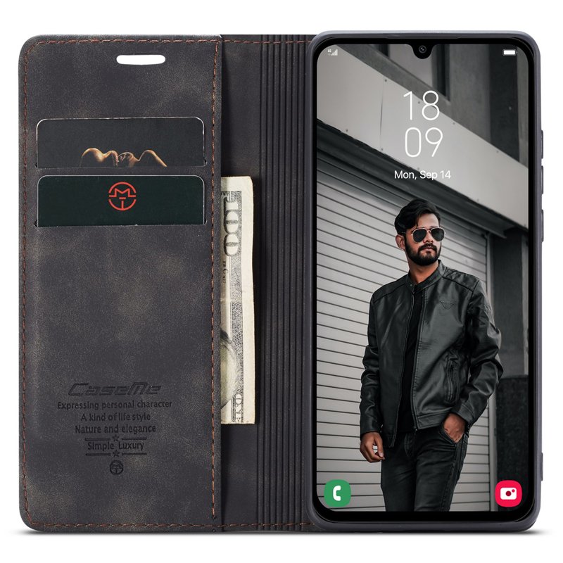 Detta fodral kombinerar stil och funktionalitet. Tillverkat av noggrant utvalt PU-läder och TPU, erbjuder det ett retroutseende som skyddar din telefon. Med smarta fack för kort och kontanter blir din vardag enklare. Njut av handsfree-visning med en justerbar ställning.