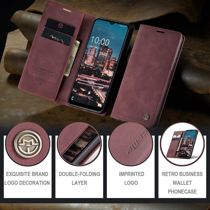 Detta fodral kombinerar stil och funktionalitet. Tillverkat av noggrant utvalt PU-läder och TPU, erbjuder det en retro känsla och skyddar din telefon effektivt. Med smarta fack för kort och kontanter blir din vardag enklare och mer organiserad.