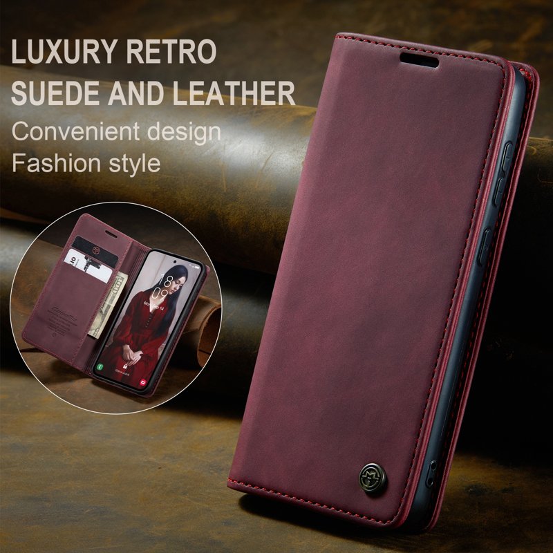Detta fodral kombinerar stil och funktionalitet. Tillverkat av noggrant utvalt PU-läder och TPU, erbjuder det ett retroutseende som skyddar din telefon effektivt. Med smarta designlösningar gör det din vardag enklare och mer bekväm.