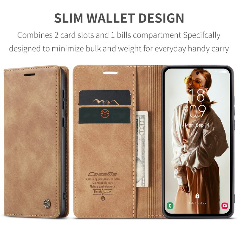 Detta fodral kombinerar stil och funktionalitet. Tillverkat av noggrant utvalt PU-läder och TPU-inre, erbjuder det ett retroutseende som skyddar din telefon. Med praktiska funktioner gör det din vardag enklare och mer bekväm.