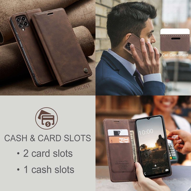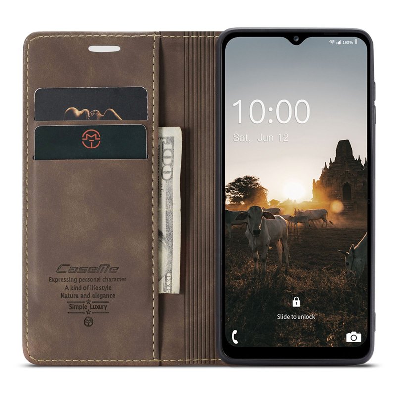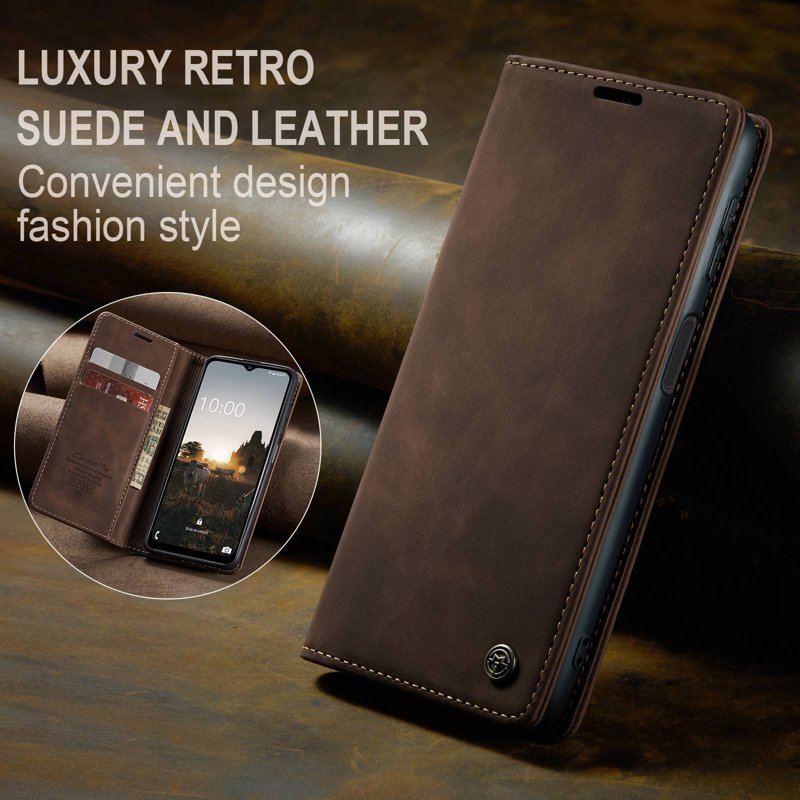 Detta fodral kombinerar stil och funktionalitet. Tillverkat av noggrant utvalt PU-läder och TPU, erbjuder det ett retro utseende och skyddar din telefon effektivt. Med smarta fack för kort och kontanter blir din vardag enklare.
