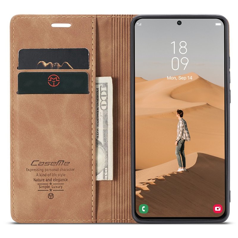 Handla denna produkt CASEME 013 Series Samsung Galaxy S22 5G Fodral Läder Brun