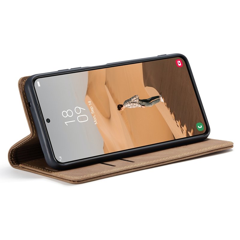 CASEME 013 Series Samsung Galaxy S22 5G Fodral Läder Brun