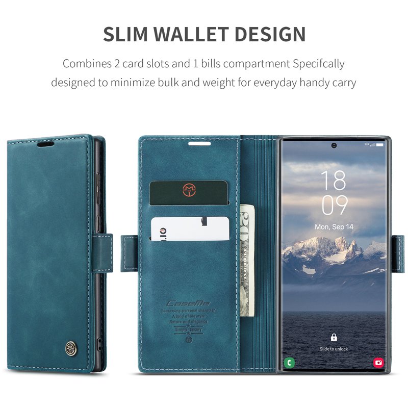 Detta fodral kombinerar stil och funktionalitet. Tillverkat av noggrant utvalt PU-läder och TPU-inre, erbjuder det en retro känsla och skyddar din telefon effektivt. Med smarta fack för kort och kontanter gör det din vardag enklare.