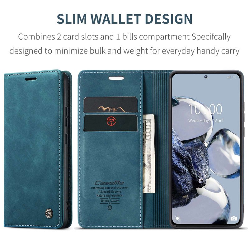 Detta fodral kombinerar stil och funktionalitet. Tillverkat av noggrant utvalt PU-läder och TPU, erbjuder det ett retroutseende som skyddar din telefon effektivt. Med smarta fack för kort och kontanter gör det din vardag enklare.