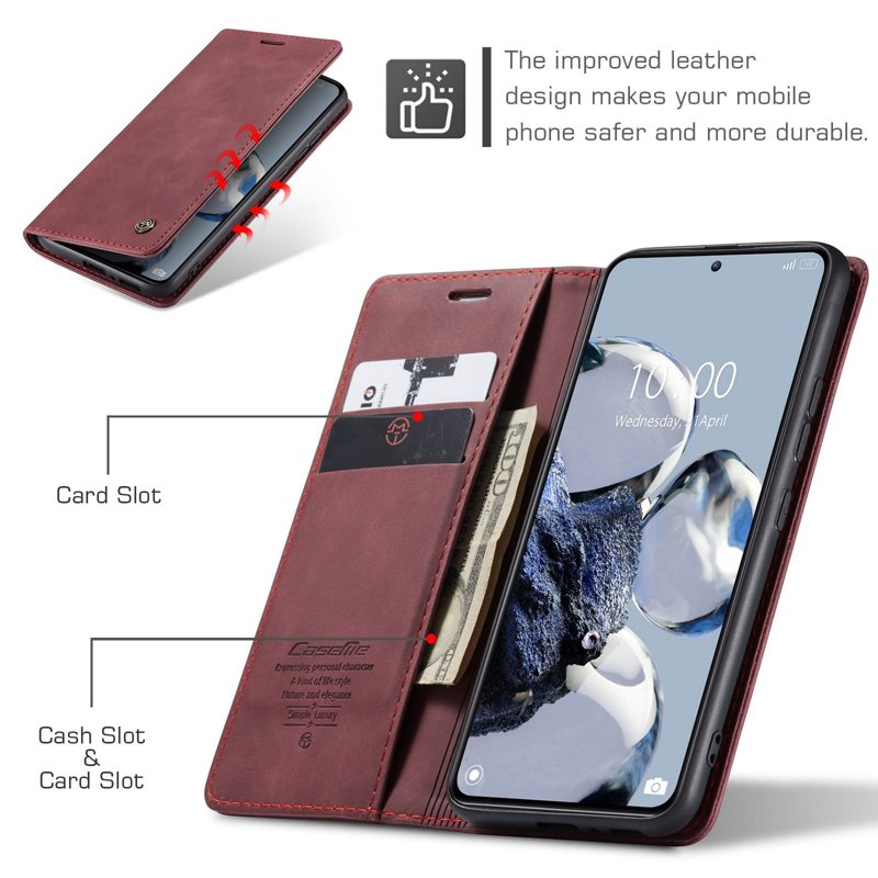 Detta fodral kombinerar stil och funktionalitet. Tillverkat av noggrant utvalt PU-läder och TPU-inre, erbjuder det ett retroutseende som skyddar din telefon effektivt. Med smarta fack för kort och kontanter blir din vardag enklare och mer organiserad.