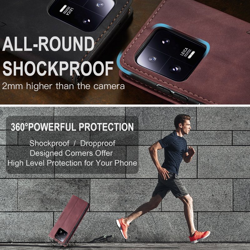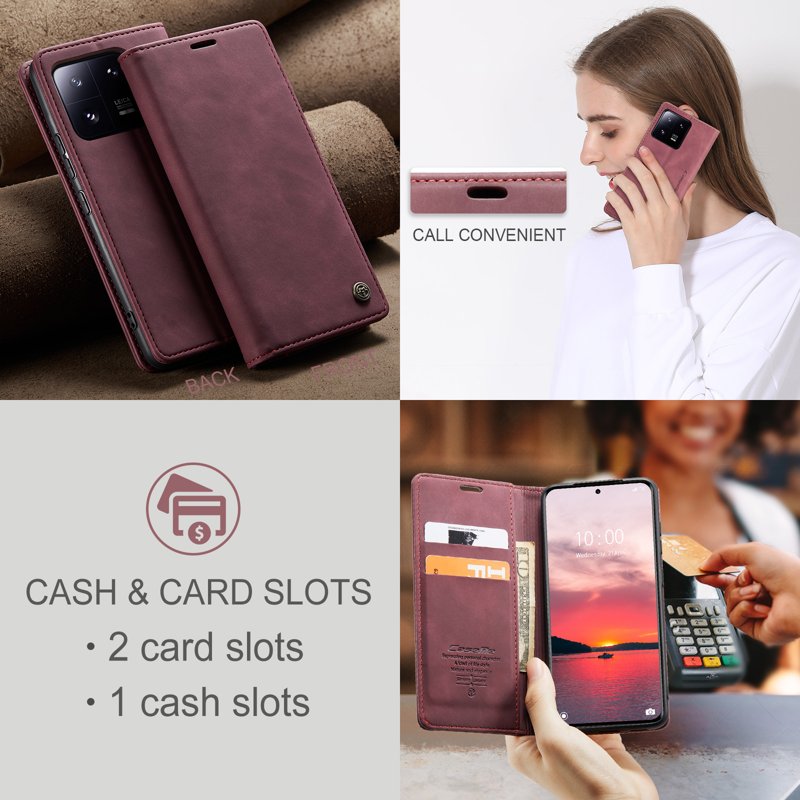 Handla denna produkt CASEME 013 Series Xiaomi 13 Pro 5G Plånboksfodral Vinröd