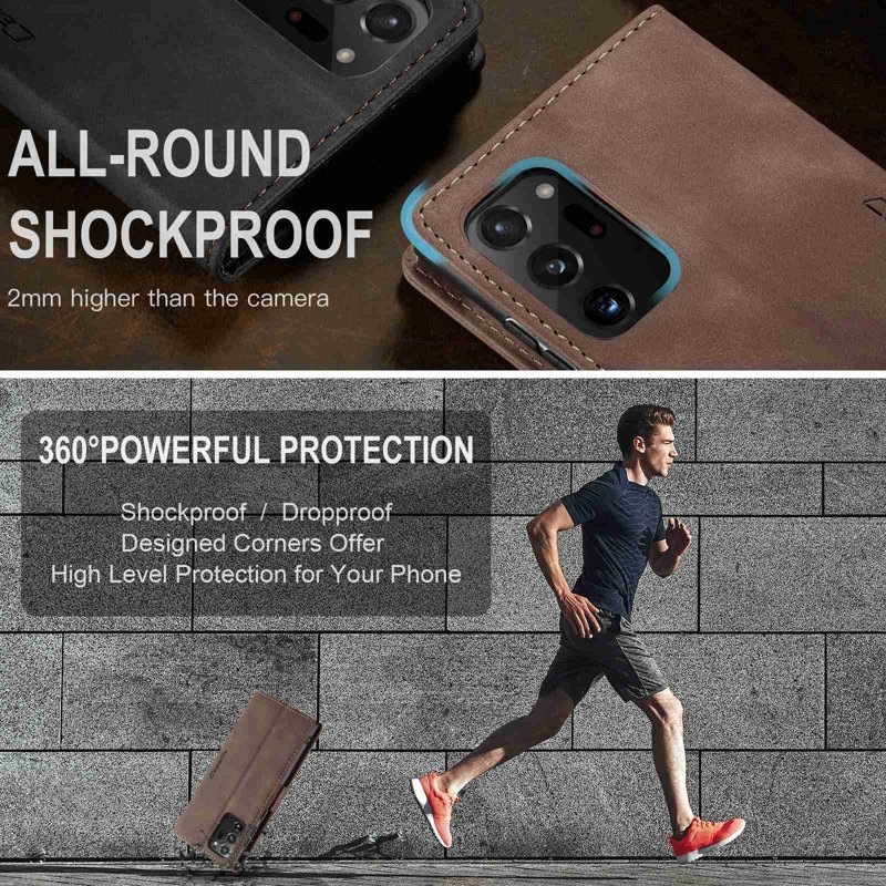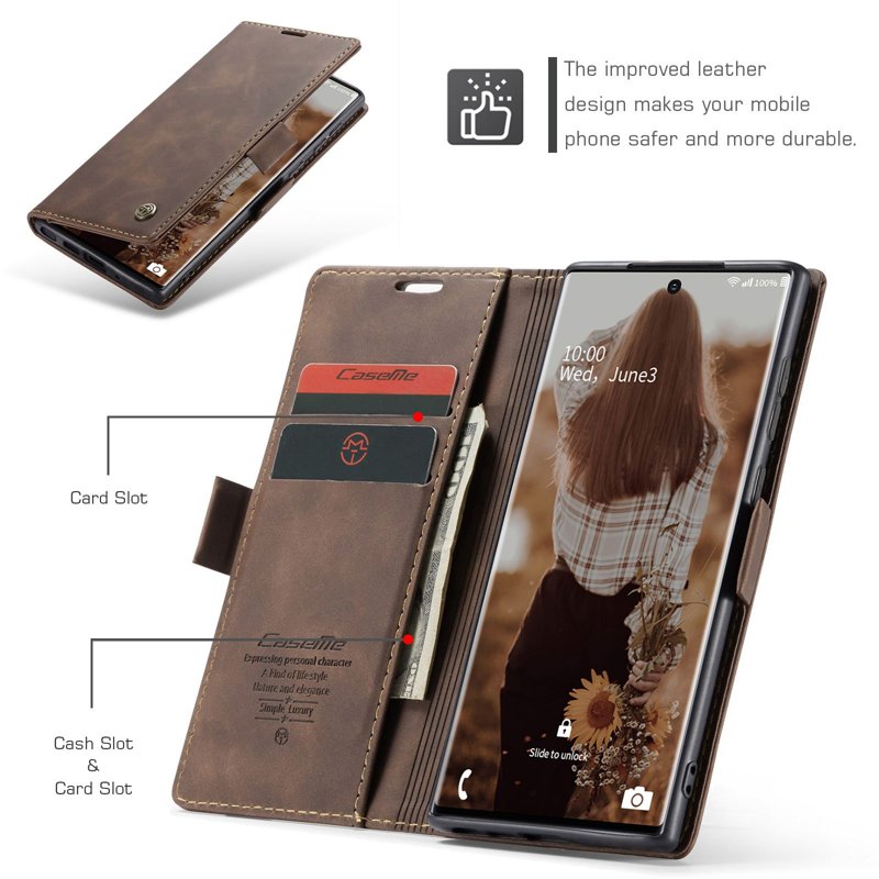 CASEME 013 Series Simplicity Auto-absorbed Leather Wallet Case för Samsung Galaxy Note20 Ultra/Note20 Ultra 5G - Kaffe