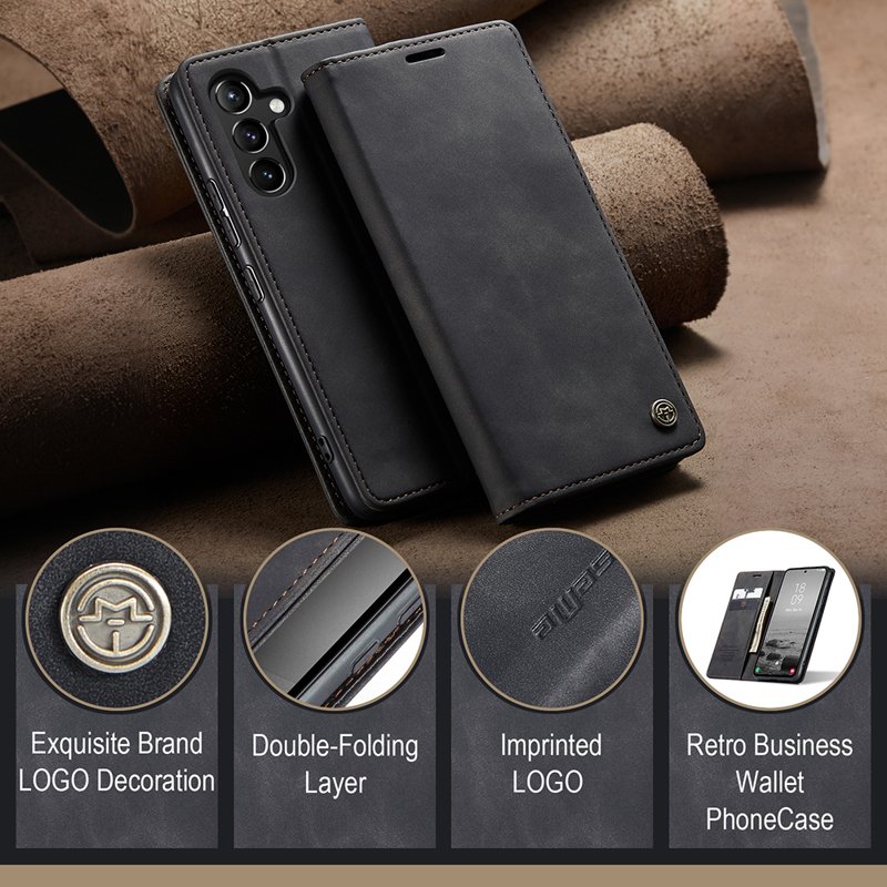 Upplev stil och funktionalitet med Luxury Retro Suede and Leather. Denna plånboksfodral kombinerar högkvalitativ PU-läder med TPU-inre för att skydda din telefon. Med en retrodesign och smarta funktioner gör den ditt liv enklare och mer elegant.