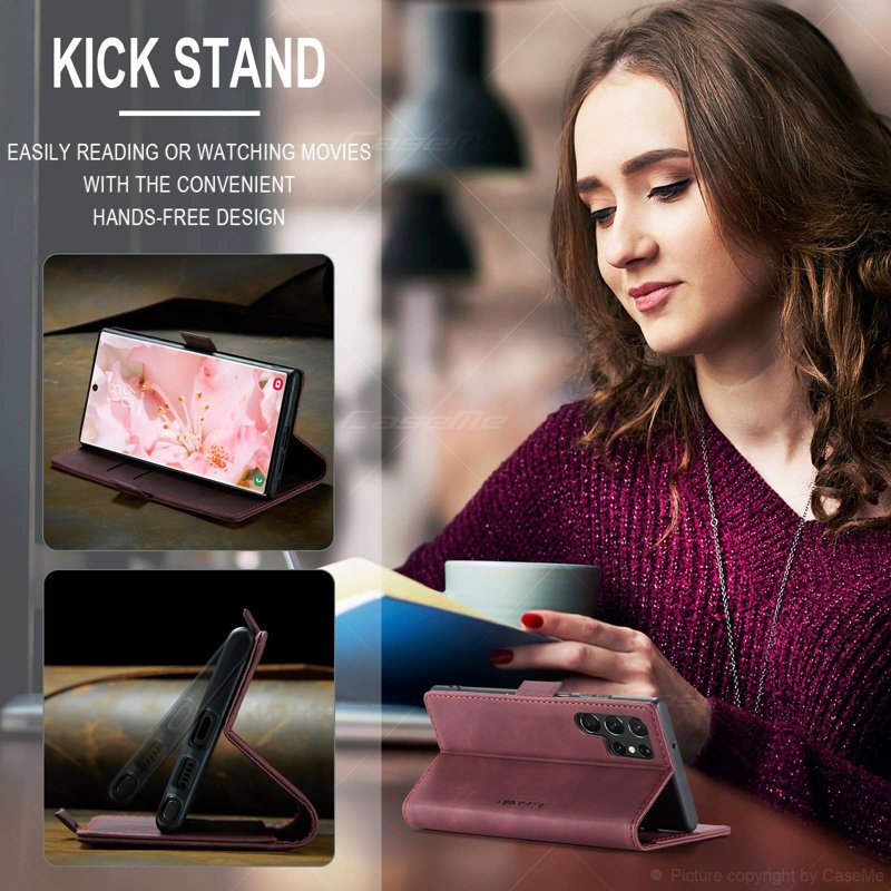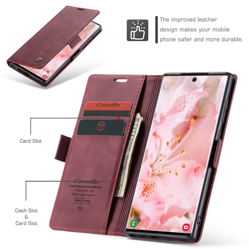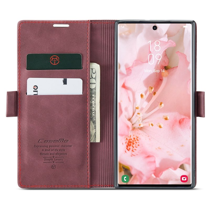CASEME fodralet kombinerar retrodesign med praktisk funktionalitet. Det är tillverkat av högkvalitativt PU-läder som är både smidigt och smutsavvisande. Det justerbara, vikbara stativet ger en bekväm visningsvinkel för videor. Dubbel magnetstängning säkerställer att dina värdesaker är skyddade.
