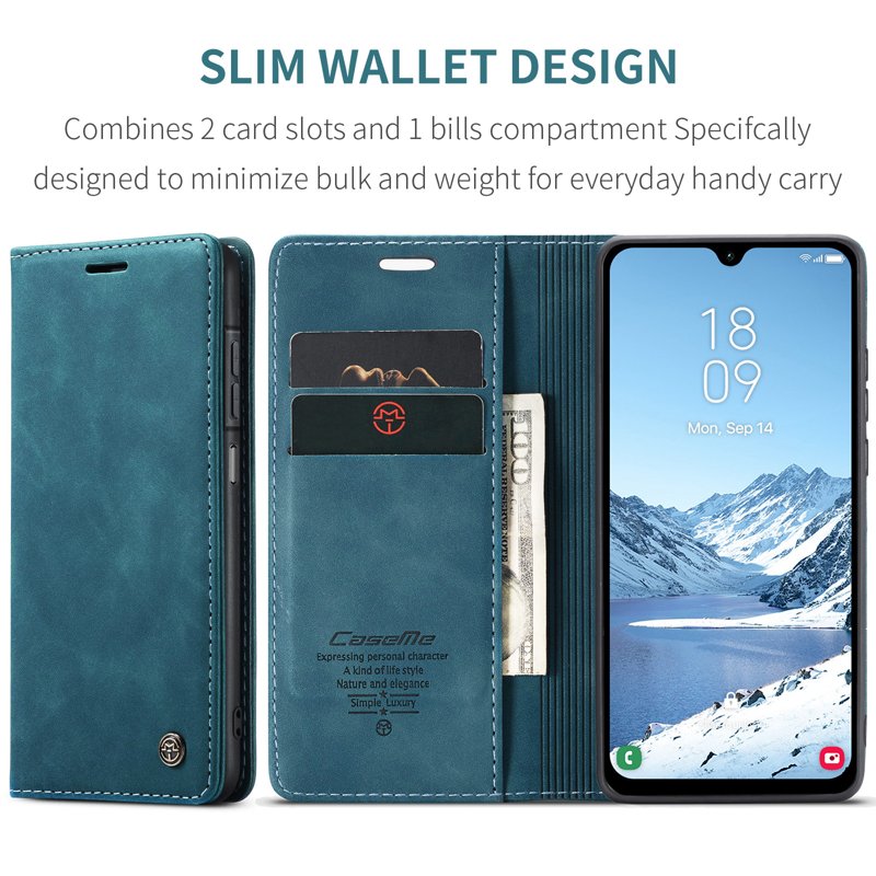Detta fodral kombinerar stil och funktionalitet. Tillverkat av noggrant utvalt PU-läder och TPU, erbjuder det ett retro utseende och skyddar din telefon effektivt. Med smarta fack för kort och kontanter gör det din vardag enklare.