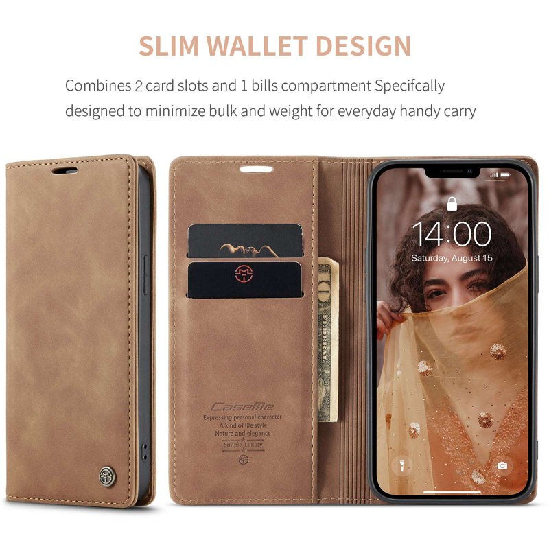 CASEME 013 Wallet Fodral i PU Läder för iPhone 13 - Brun