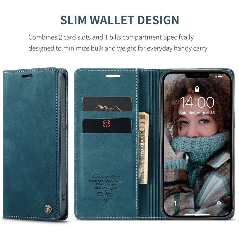 - Plånboksdesign: Två kortfack och en sedelplats för enkel förvaring av dina viktigaste kort och kontanter.