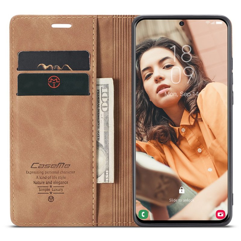 CASEME 013 Wallet Stand Cover för Samsung Galaxy S21 FE - Brun