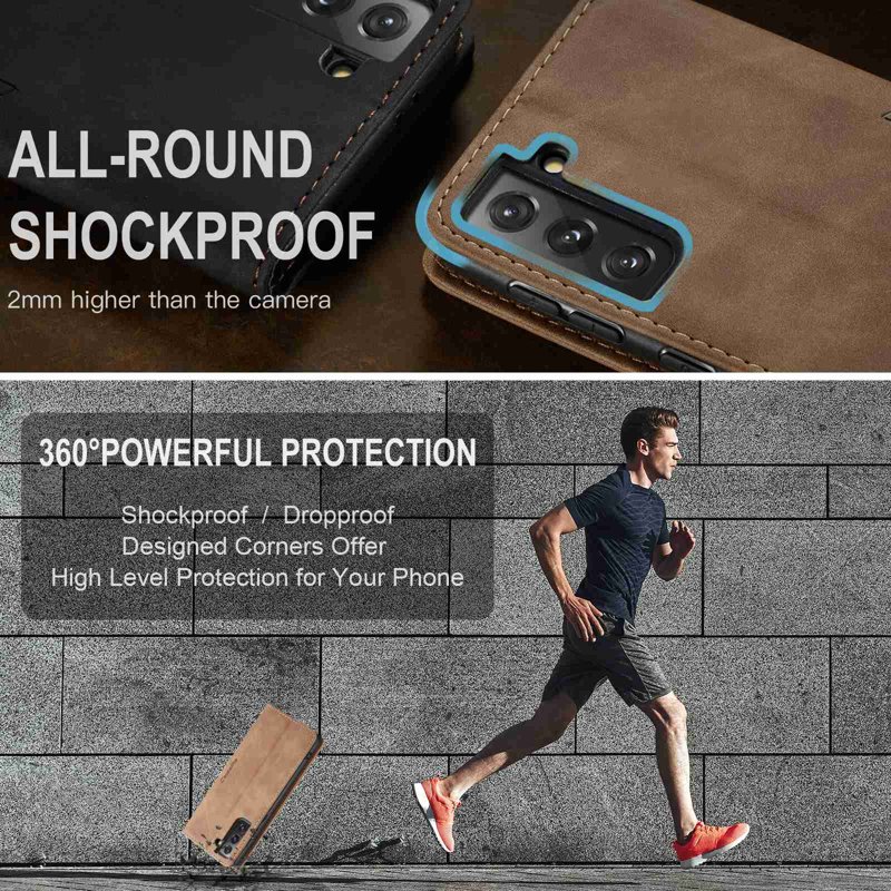Handla denna produkt CASEME 013 Wallet Stand Cover för Samsung Galaxy S21 FE - Brun