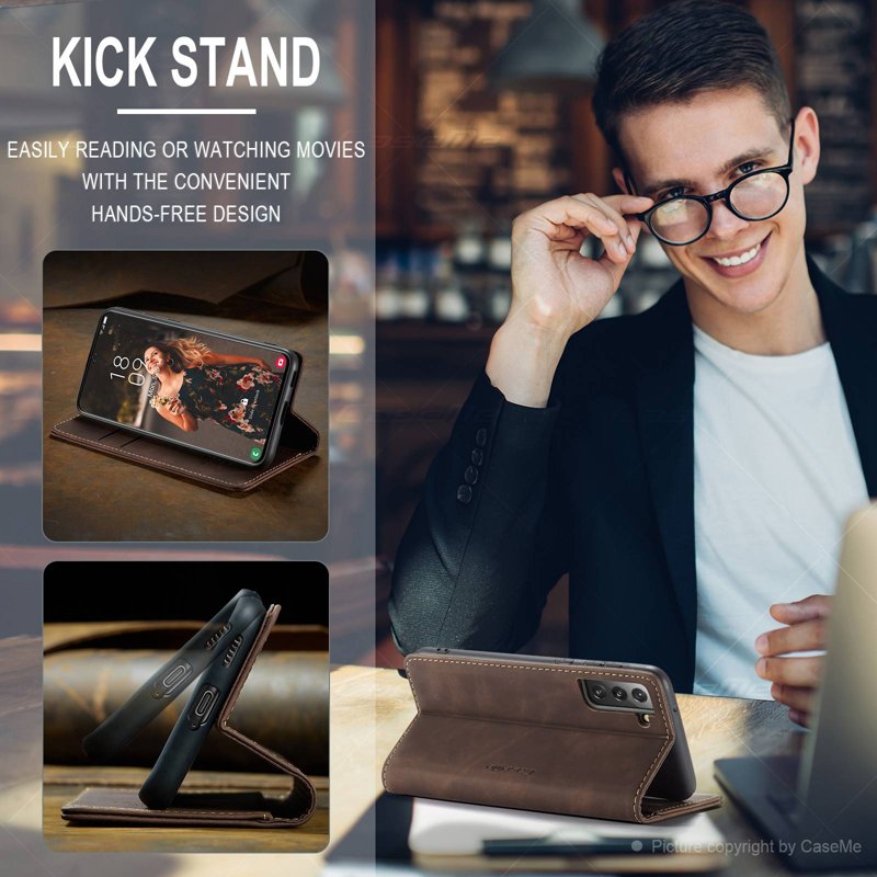 CASEME 013 Wallet Stand Cover för Samsung Galaxy S21 FE - Coffee