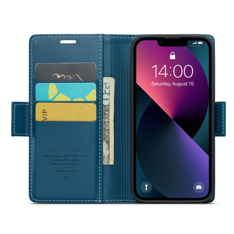 CASEME 023 iPhone 13 Läderfodral RFID Blockering Blå