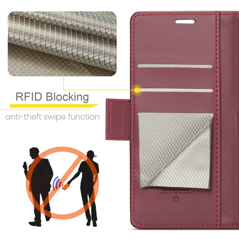 Denna plånboksfodral kombinerar elegans med funktionalitet. Tillverkat av högkvalitativt PU-läder och TPU, erbjuder det ett komplett skydd för din telefon. Med smarta fack för kort och kontanter gör det din vardag enklare. Dessutom skyddar den din personliga information med avancerad RFID-teknologi.