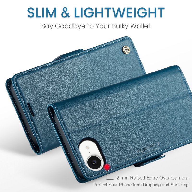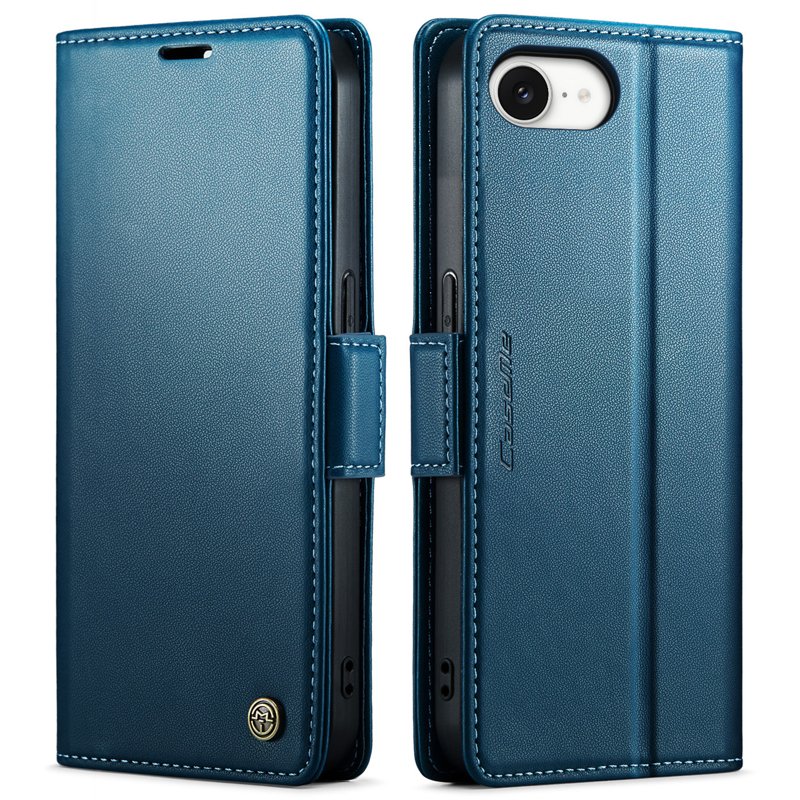 CASEME 023 iPhone 16e Läderfodral RFID Skydd Blå
