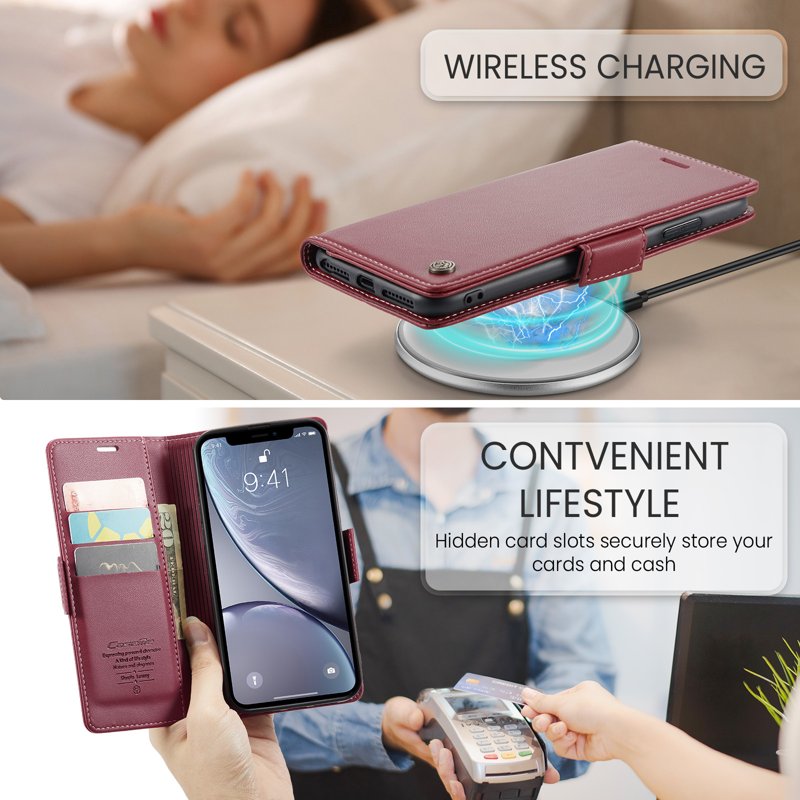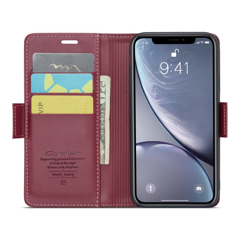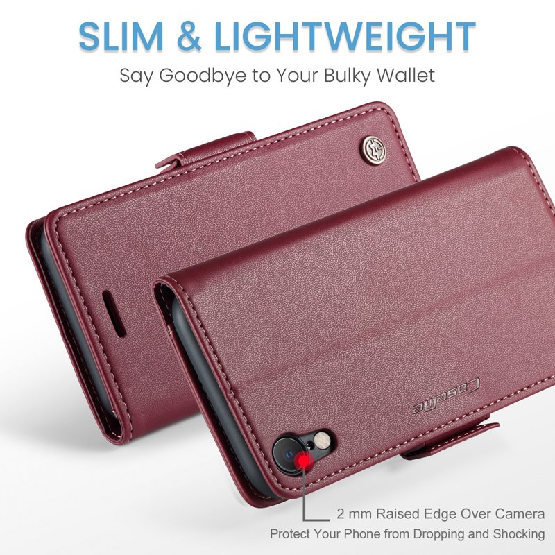 CASEME 023 iPhone XR Läderfodral RFID Blockering Röd