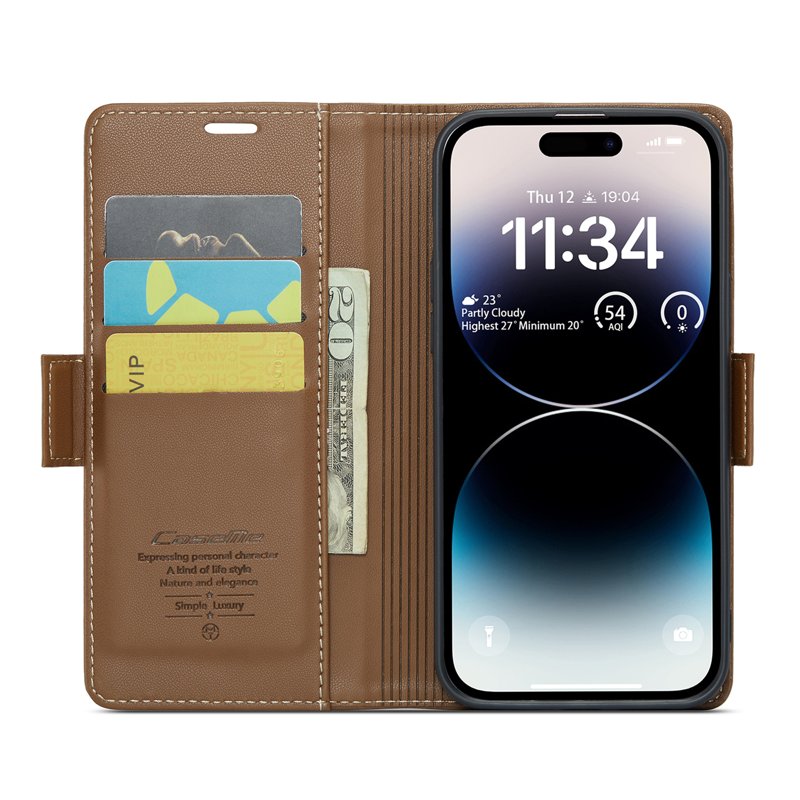Denna plånboksfodral kombinerar elegans och funktionalitet. Tillverkat av högkvalitativt PU-läder och TPU, erbjuder det ett komplett skydd för din telefon. Med smarta fack för kort och kontanter gör det din vardag enklare. Dessutom skyddar den din personliga information med avancerad RFID-blockering.