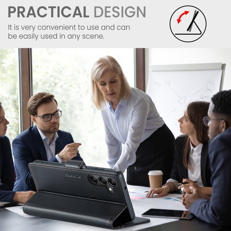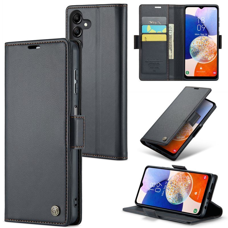 Denna plånboksfodral kombinerar elegans och funktionalitet. Tillverkat av högkvalitativt PU-läder och TPU, erbjuder det ett komplett skydd för din telefon. Med smarta fack för kort och kontanter blir din vardag enklare. Dessutom skyddar den din personliga information med avancerad RFID-teknologi.