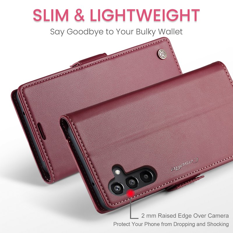 Denna plånboksfodral kombinerar elegans med funktionalitet. Tillverkat av högkvalitativt PU-läder och TPU, erbjuder det ett komplett skydd för din telefon. Med smarta fack för kort och kontanter blir din vardag enklare. Dessutom skyddar den din personliga information med avancerad RFID-teknologi.