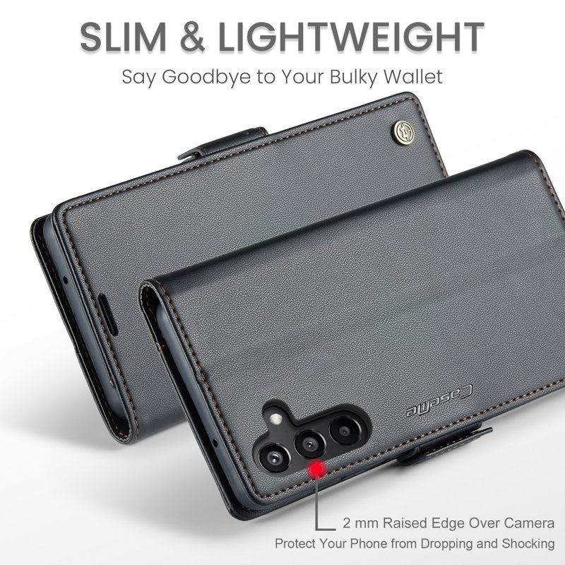 Denna plånboksfodral kombinerar elegans med funktionalitet. Tillverkat av högkvalitativt PU-läder och TPU, erbjuder det ett komplett skydd för din telefon. Med smarta fack för kort och kontanter gör det din vardag enklare. Dessutom skyddar den din personliga information med avancerad RFID-blockering.