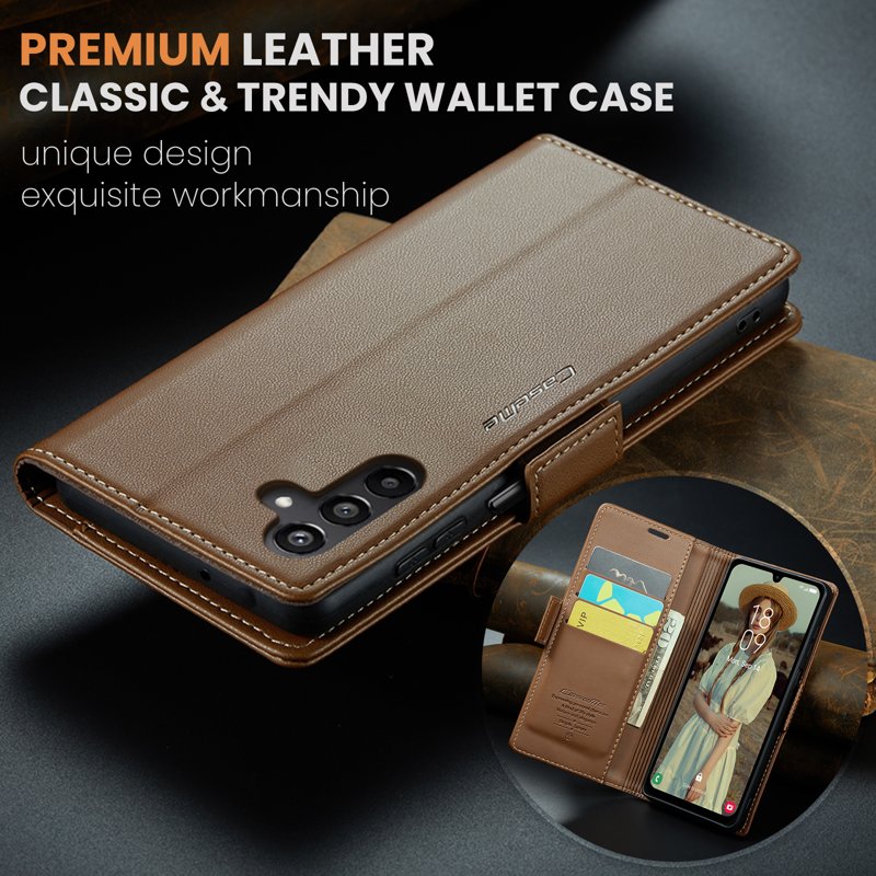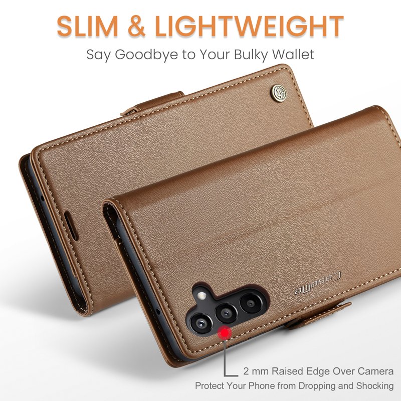 Denna plånboksfodral kombinerar elegans med funktionalitet. Tillverkat av högkvalitativt PU-läder och TPU, erbjuder det fullständigt skydd för din telefon. Med smarta fack för kort och kontanter gör det din vardag enklare. Dessutom skyddar den din personliga information med avancerad RFID-teknik.
