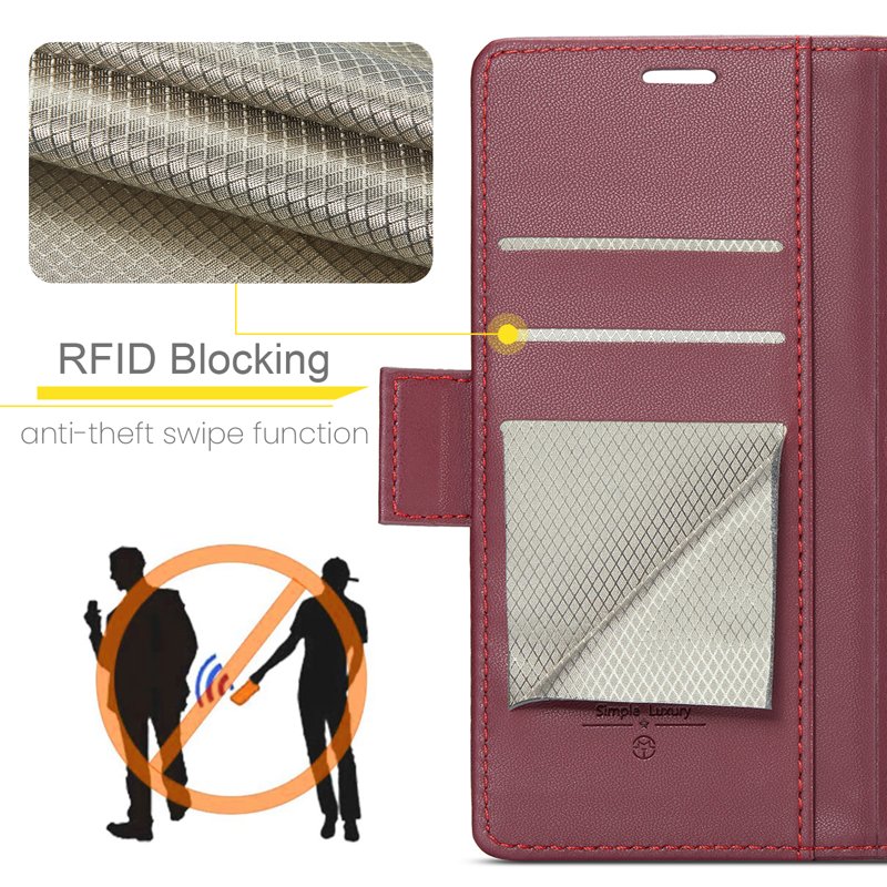 Denna plånboksfodral kombinerar elegans och funktionalitet. Tillverkat av högkvalitativt PU-läder och TPU, erbjuder det ett komplett skydd för din telefon. Med smarta fack för kort och kontanter blir din vardag enklare. Dessutom skyddar avancerad RFID-teknik din personliga information.
