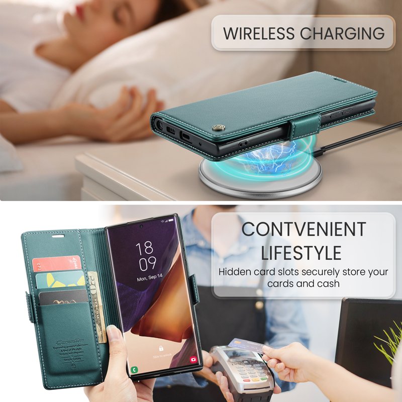 Denna plånboksfodral kombinerar elegans med funktionalitet. Tillverkat av högkvalitativt PU-läder och TPU, erbjuder det ett komplett skydd för din telefon. Med smarta fack för kort och kontanter gör det din vardag enklare. Dessutom skyddar den din personliga information med avancerad RFID-teknik.