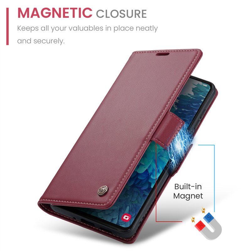 Denna plånboksfodral kombinerar elegans med funktionalitet. Tillverkat av högkvalitativt PU-läder och TPU, erbjuder det ett komplett skydd för din telefon. Med smarta fack för kort och kontanter gör det din vardag enklare. Dessutom skyddar avancerad RFID-teknik din personliga information.