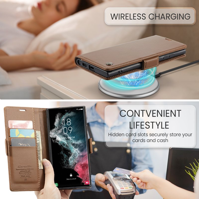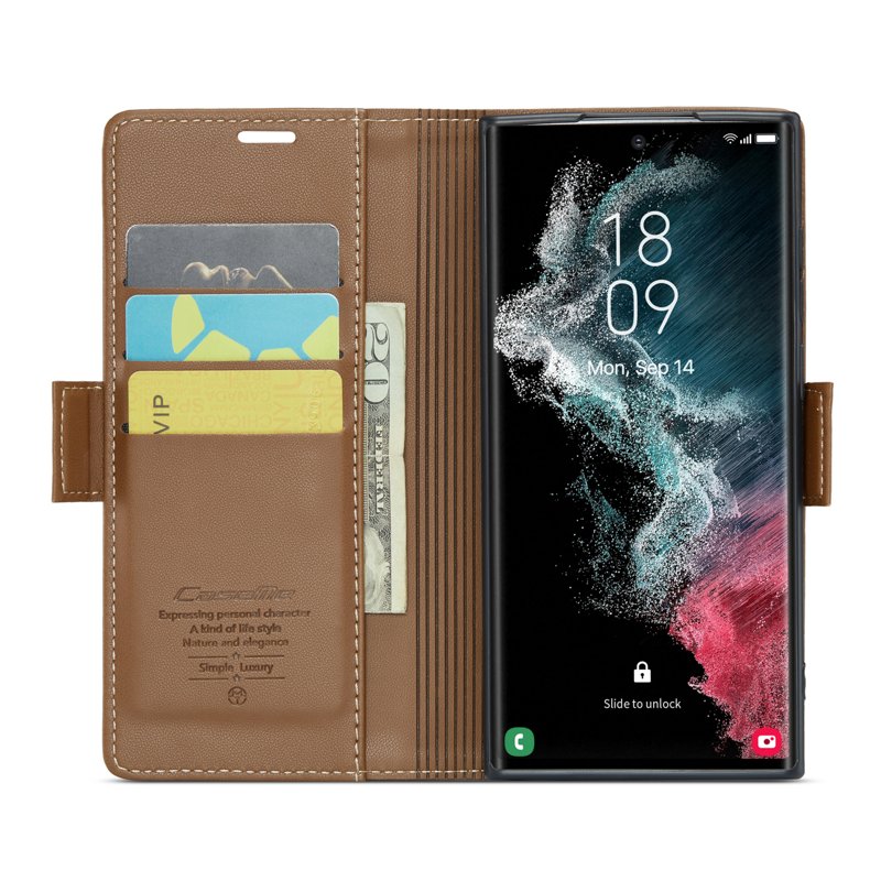 Denna plånboksfodral kombinerar elegans med funktionalitet. Tillverkat av högkvalitativt PU-läder och TPU, erbjuder det fullständigt skydd för din telefon. Med smarta fack för kort och kontanter gör det din vardag enklare. Dessutom skyddar den din personliga information med avancerad RFID-blockering.