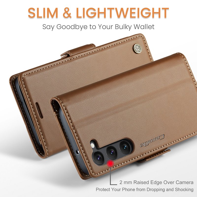 Denna plånboksfodral kombinerar eleganta material med praktiska funktioner. Tillverkat av PU-läder och TPU, erbjuder det både skydd och stil. Med plats för kort och kontanter gör det din vardag enklare. Dessutom skyddar avancerad RFID-teknik din personliga information.