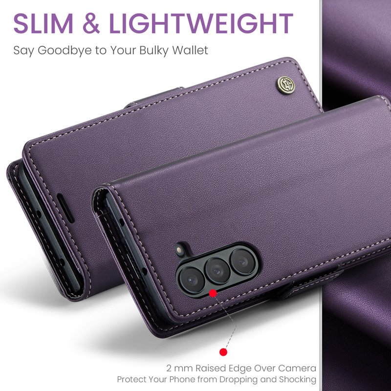Denna plånboksfodral kombinerar elegans och funktionalitet. Tillverkat av högkvalitativt PU-läder och TPU, erbjuder det ett komplett skydd för din telefon. Med smarta fack för kort och kontanter blir din vardag enklare. Dessutom skyddar den din personliga information med avancerad RFID-teknologi.