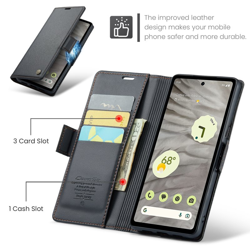CASEME Plånboksfodral Konstläder till Google Pixel 7a - Svart