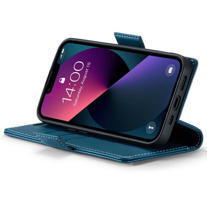 CASEME 023 Läderfodral till iPhone 15 RFID Blockering Blå