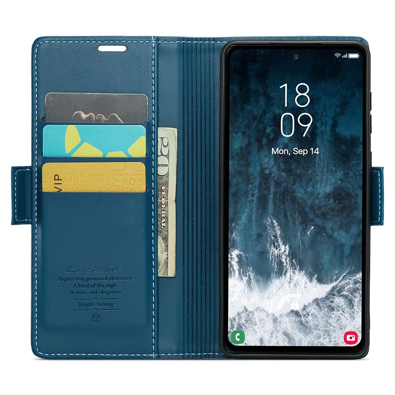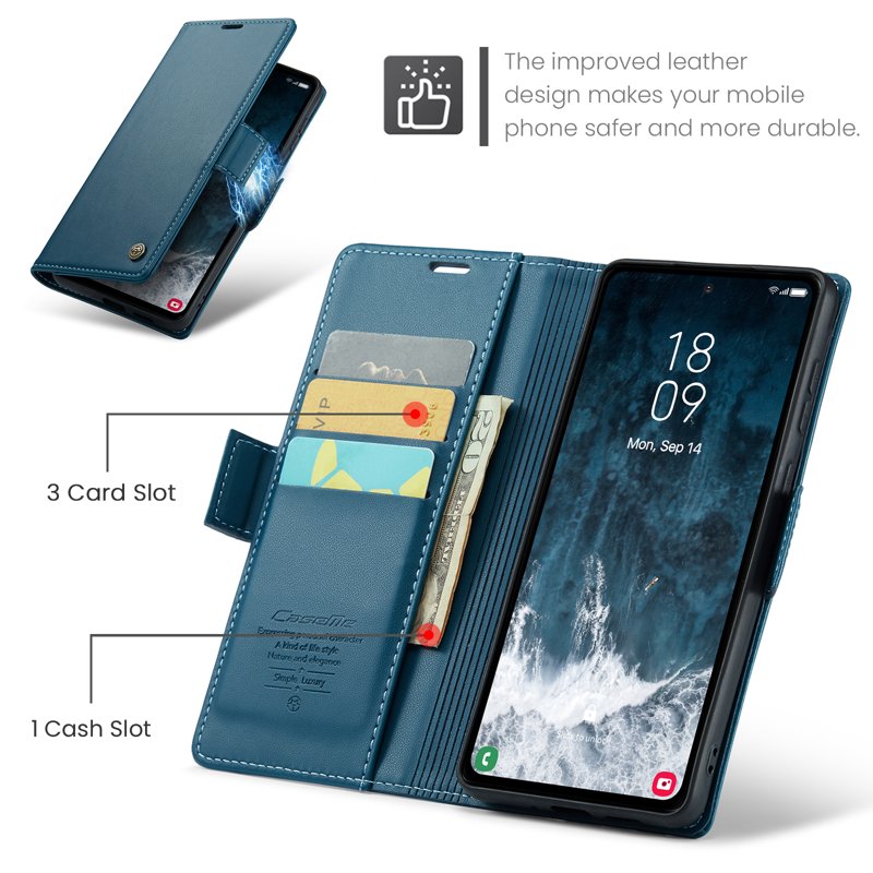 Denna plånboksfodral kombinerar elegans med funktionalitet. Tillverkat av högkvalitativt PU-läder och TPU, erbjuder det ett komplett skydd för din telefon. Med smarta fack för kort och kontanter gör det din vardag enklare och mer organiserad.