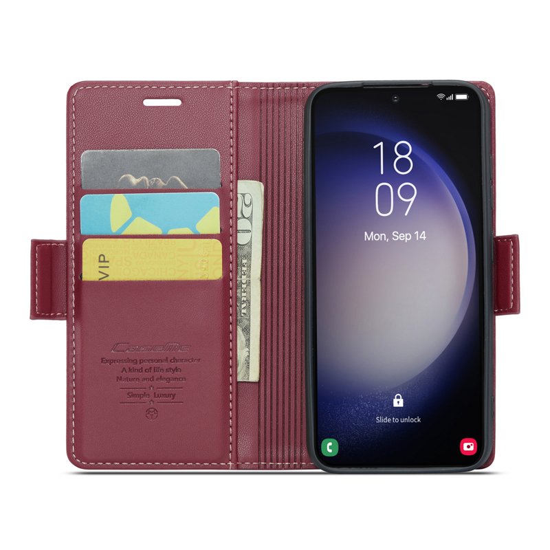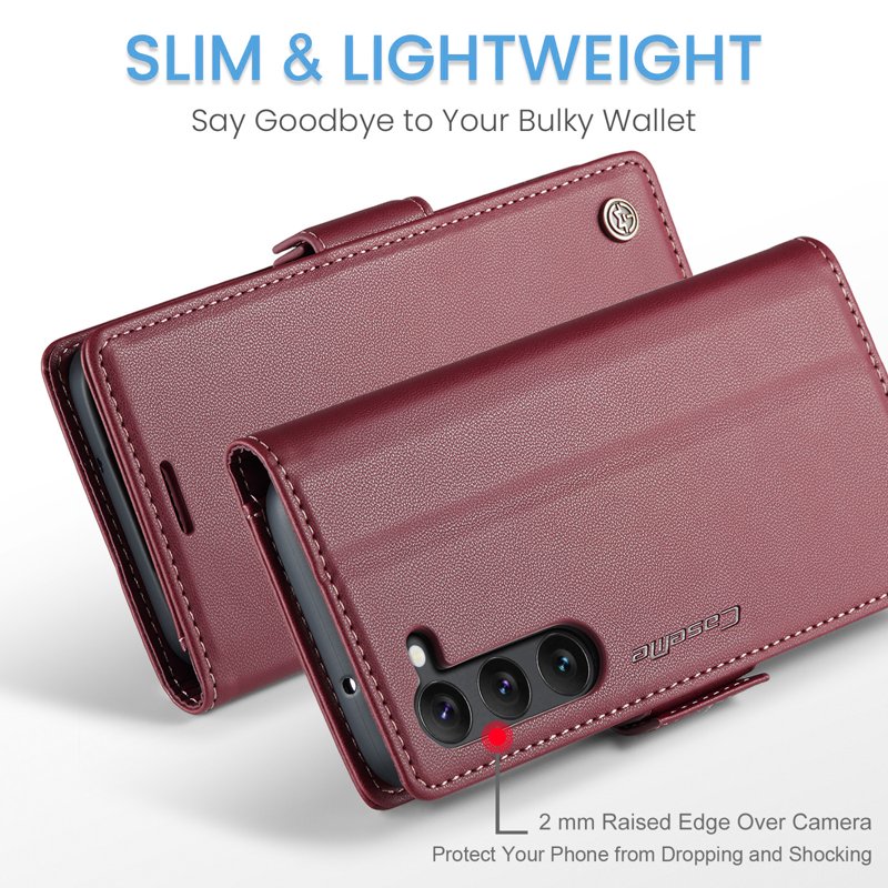 Denna plånboksfodral kombinerar elegans och funktionalitet. Tillverkat av högkvalitativt PU-läder och TPU, erbjuder det ett komplett skydd för din telefon. Med smarta fack för kort och kontanter gör det din vardag enklare. Dessutom skyddar den din personliga information med avancerad RFID-teknologi.