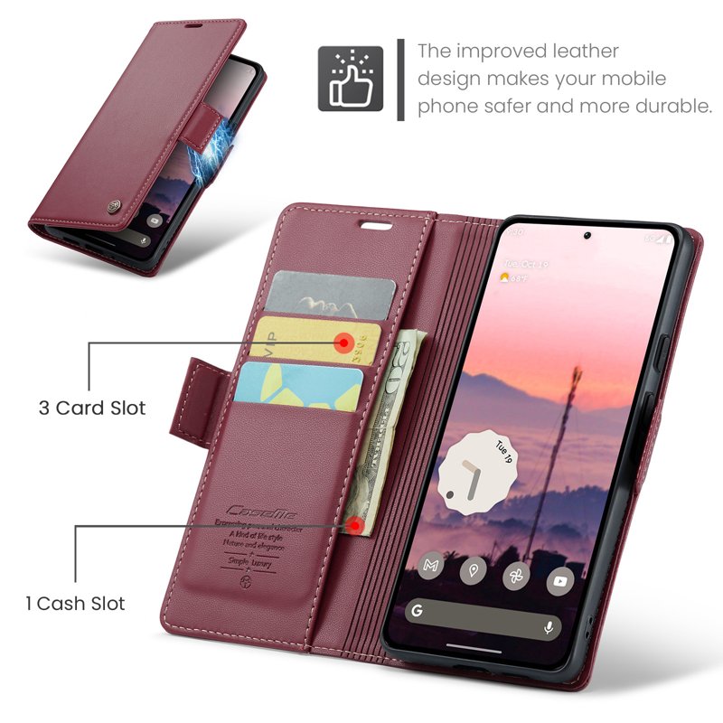 Denna plånboksfodral kombinerar elegans och funktionalitet. Tillverkat av högkvalitativt PU-läder och TPU, erbjuder det ett komplett skydd för din telefon. Med smarta fack för kort och en RFID-blockerande funktion, gör det din vardag enklare och säkrare.