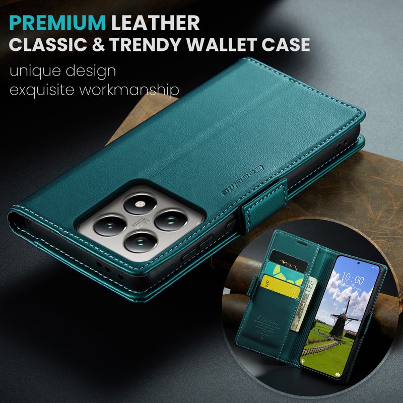 CASEME 023 Xiaomi 14T Pro Läderfodral RFID Grön