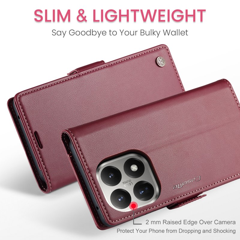 Denna plånboksfodral kombinerar elegans och funktionalitet. Tillverkat av högkvalitativt PU-läder och TPU, erbjuder det ett komplett skydd för din telefon. Med smarta fack för kort och kontanter gör det din vardag enklare. Dessutom skyddar den din personliga information med avancerad RFID-blockering.