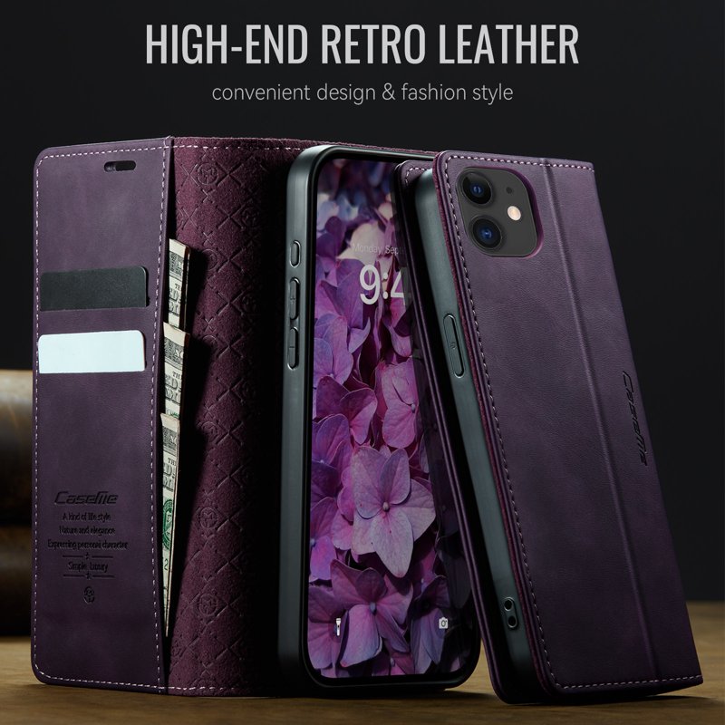 Handla denna produkt CASEME 033 iPhone 12 mini Skal RFID Blocker Lila Läder