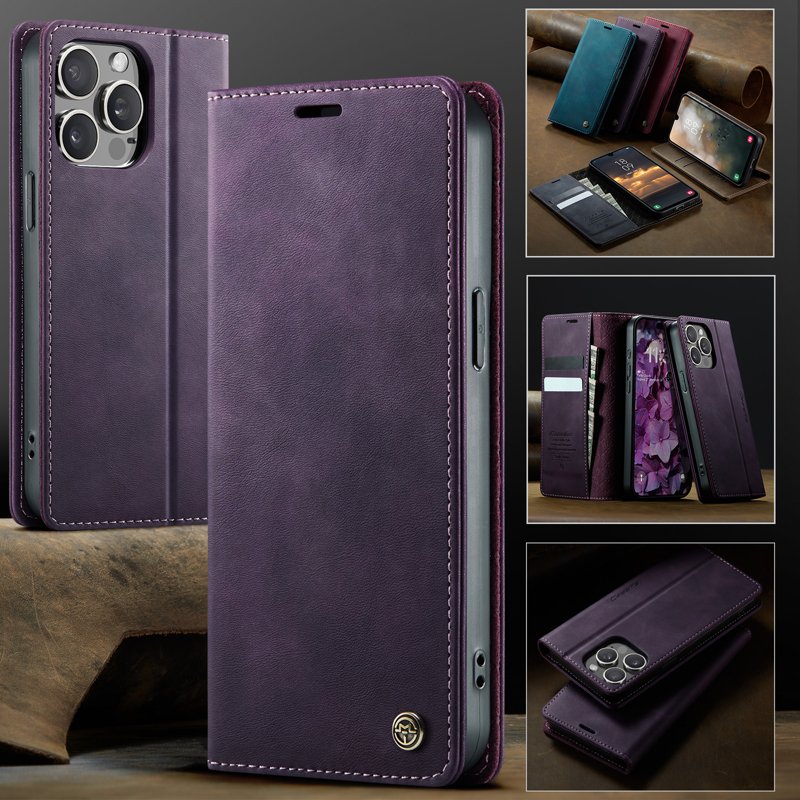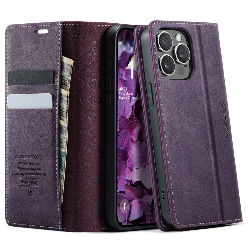 CASEME 033 iPhone 14 Pro Max Skal RFID Blocker Läder Lila