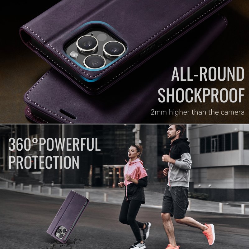 Handla denna produkt CASEME 033 iPhone 14 Pro Max Skal RFID Blocker Läder Lila