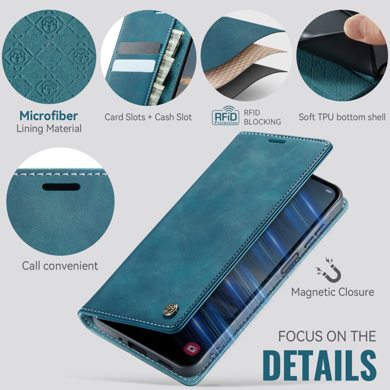 Denna mobilskal kombinerar funktionalitet och elegans. Tillverkat av hållbara PU- och TPU-material ger det ett komplett skydd mot slitage, repor och stötar. Med en smart plånboksdesign kan du enkelt förvara dina kort och kontanter, vilket gör det till ett utmärkt alternativ till en vanlig plånbok.