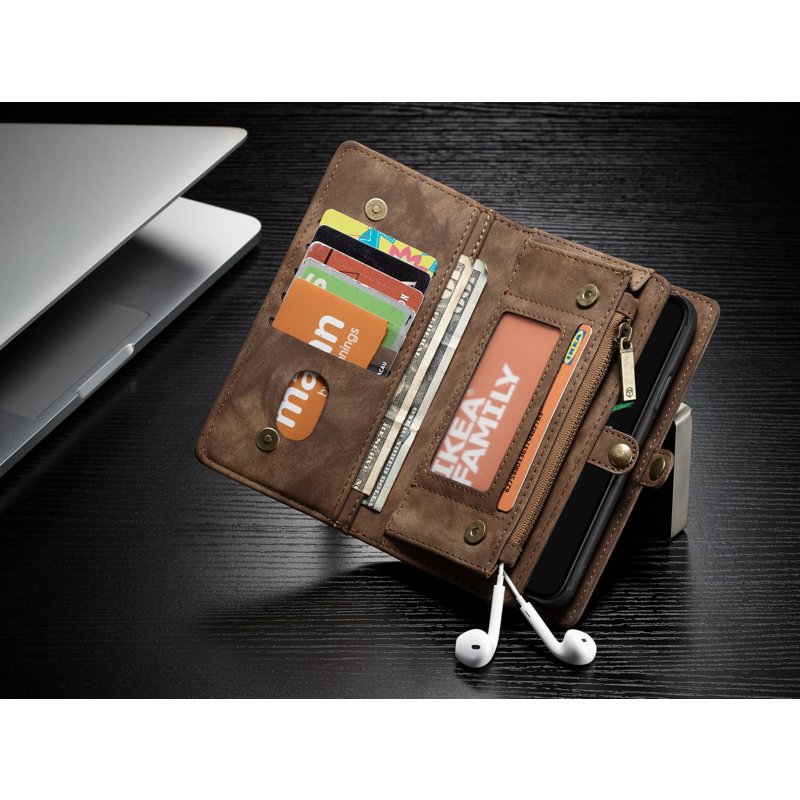 Denna mobilfodral kombinerar stil och funktionalitet med sin smarta design för flera kortfack. Du kan enkelt organisera dina kreditkort, busskort och ID-kort. Fodralet har en säker dragkedja för kontanter och plats för hörlurar. Tillverkat av högkvalitativt PU-läder och TPU-material för långvarig hållbarhet.